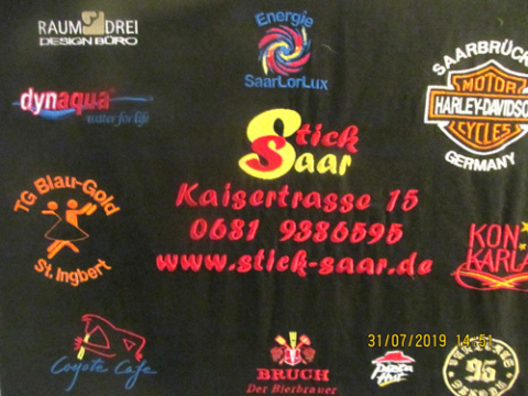 Ich sticke Logos, Schriftzüge und Namen auf Kappen, T-Shirts und alle Arten von Textilien.
